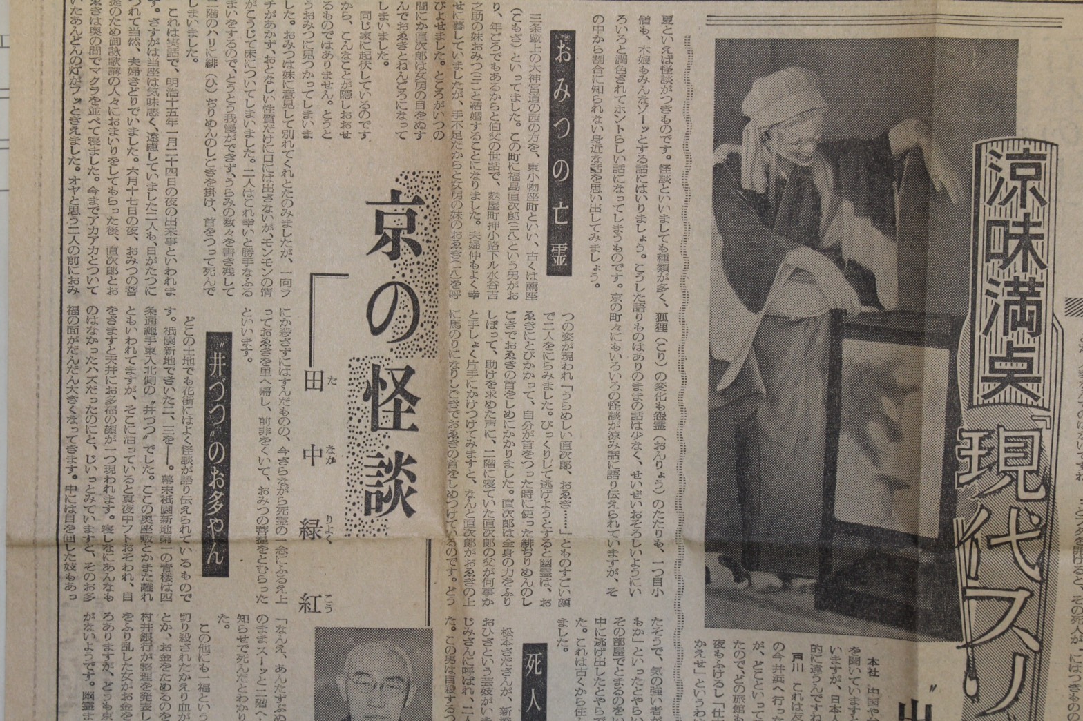 今回は百物語の館の演目にもなった「おみつの怨霊」を取り上げてこの話の舞台となった京都粟田口近辺の土地の記憶と怪談の関係性について報告した。原話は田中緑紅の『京の怪談』に載るもので、明治15年の東小物座町を舞台とする実話怪談である。明治期の日出新聞や京都新聞にも取り上げられた京都怪談の典型とみて良い。一方粟田口周辺には明智光秀の首塚や粟田口処刑場も点在し、明治以前からの伝承を数多く残す。これらの土地にまつわる記憶が怪談の発生とどう関わったかについて仮説を立てみた。
